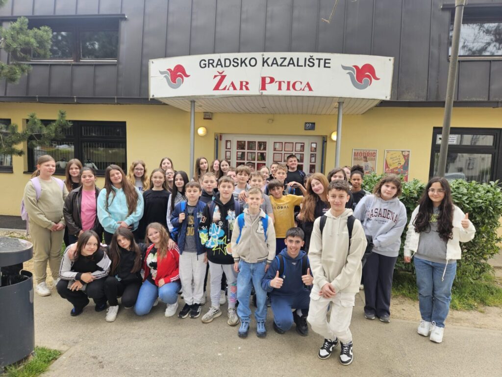 Dana 13. travnja 2026. učenici 5. i 6. razreda u sklopu nastave hrvatskoga jezika posjetili su Kazalište Žar ptica i uživali u kazališnoj predstavi Mrvice iz dnevnog boravka. Zanimljiva i poučna izvedba oduševila je učenike, što su na kraju nagradili velikim pljeskom .
