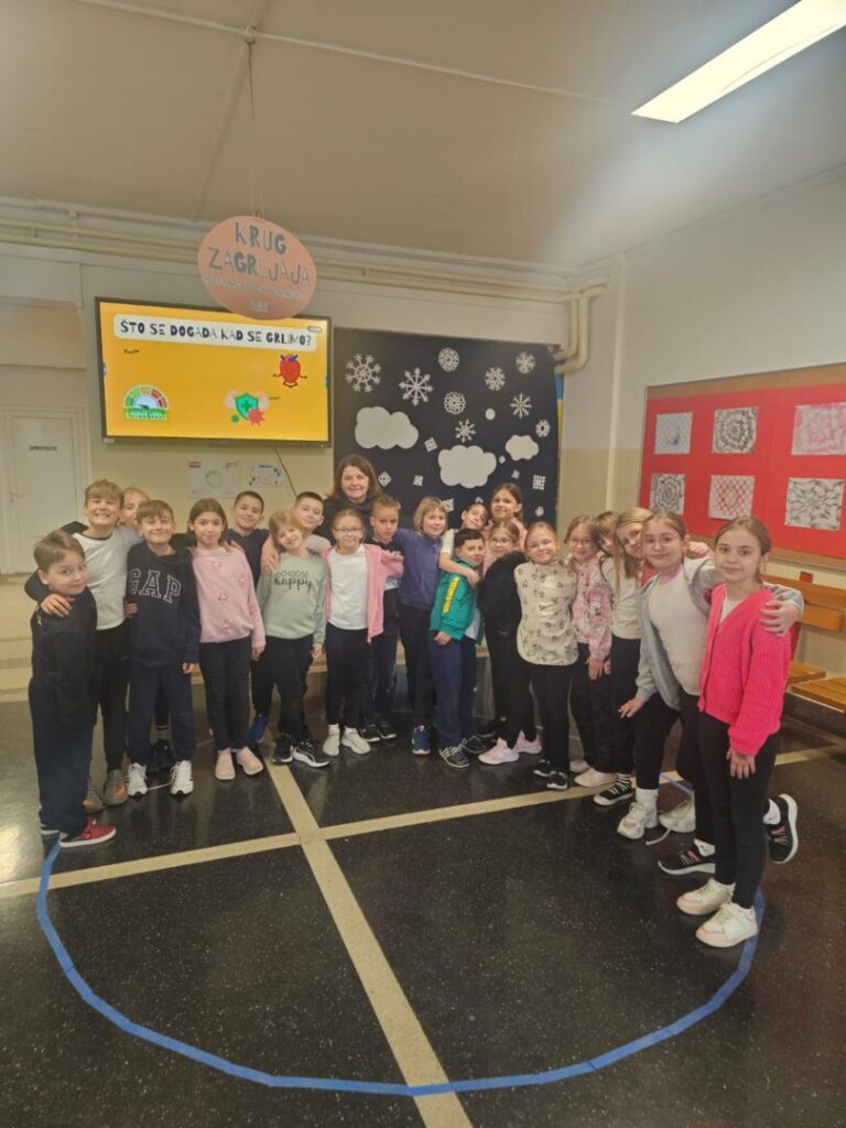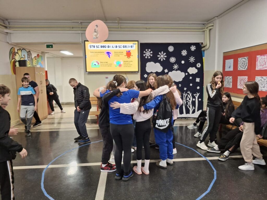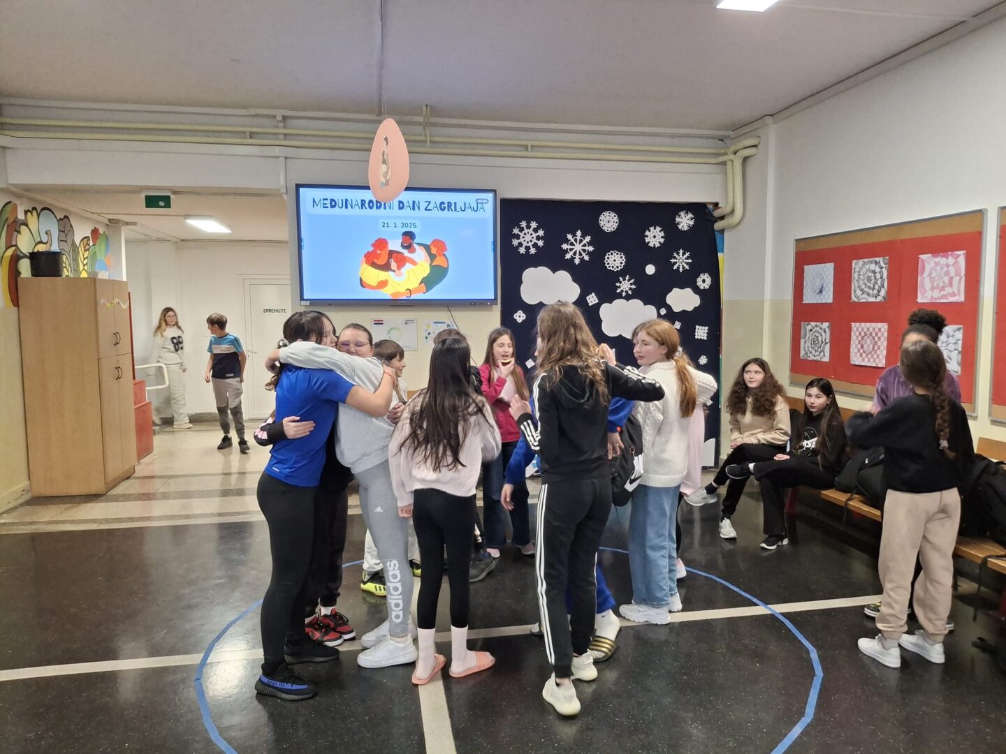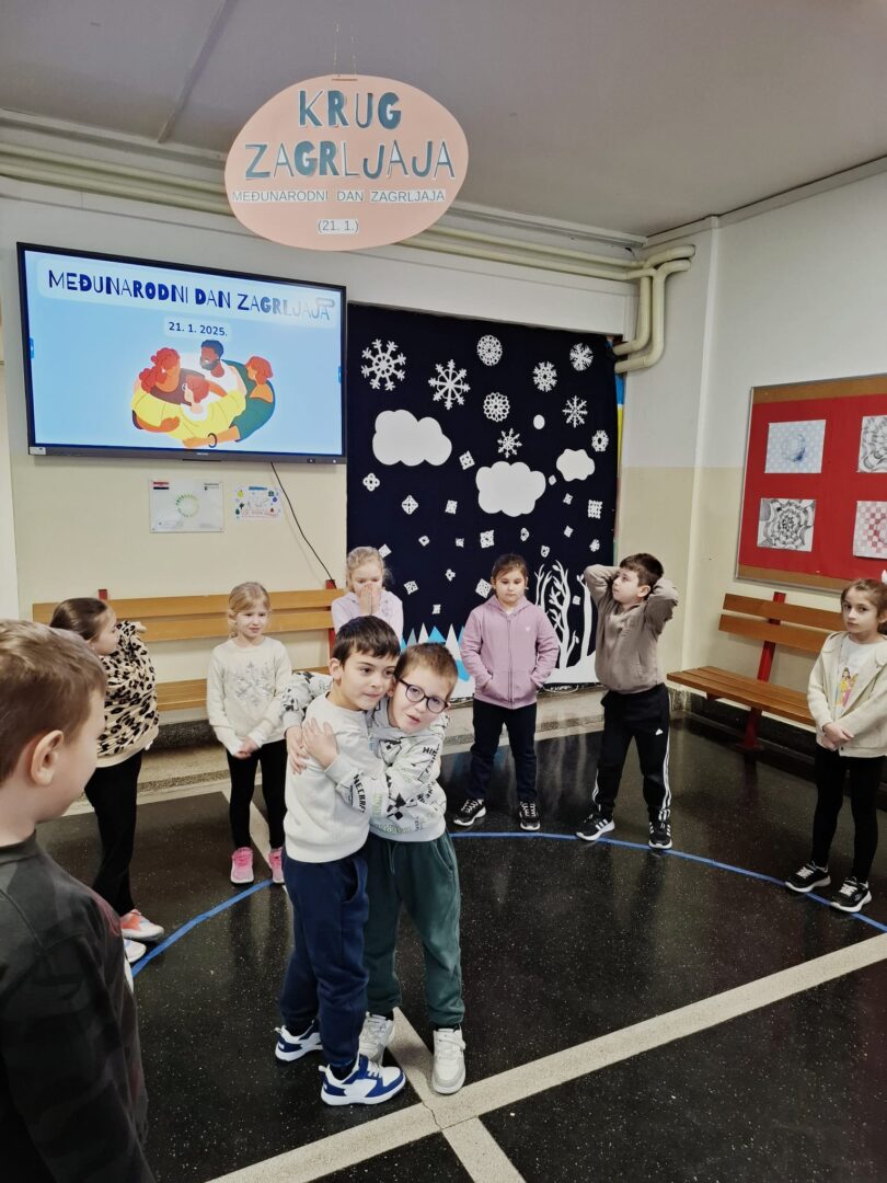 U našoj smo školi obilježili Međunarodni dan zagrljaja kroz razne aktivnosti u kojima su učenici zajedno s učiteljicama razgovarali o važnosti zagrljaja, bliskosti i međusobne podrške. Kroz igru, razgovor i kreativne zadatke učili su kako zagrljaj može razveseliti, utješiti i povezati ljude. U holu škole postavljen je krug zagrljaja kao simbol ove male geste koja povezuje, pruža osjećaj sigurnosti i pokazuje da nismo sami.