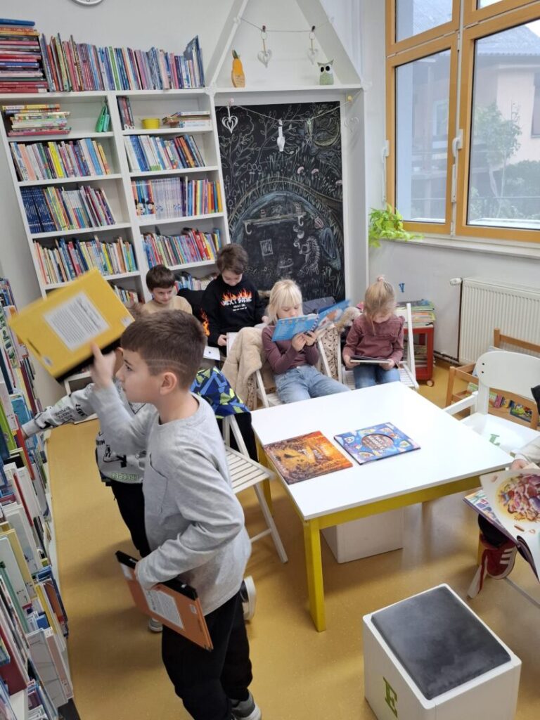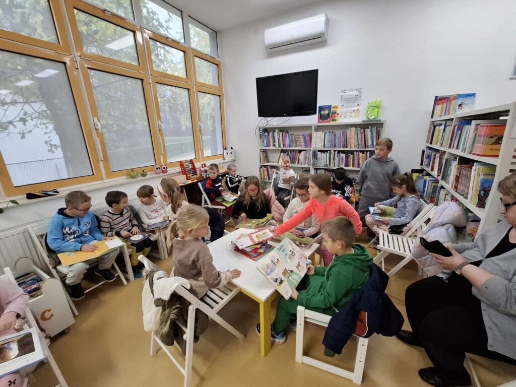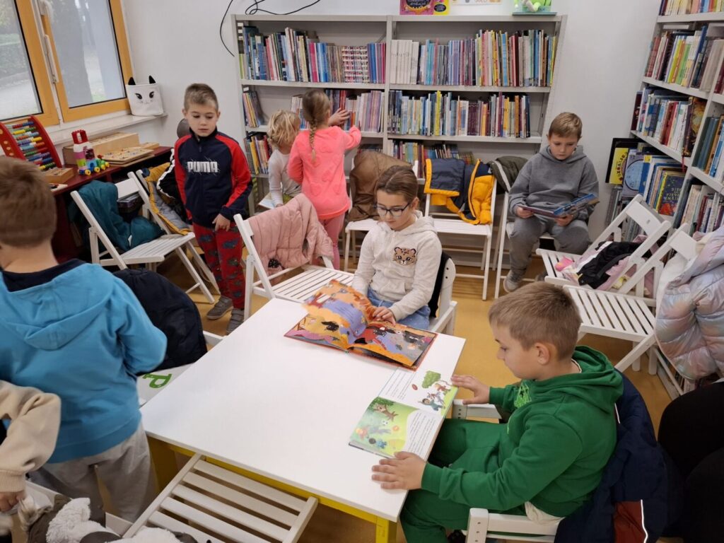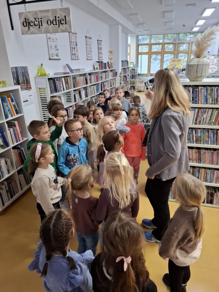 U ponedjeljak, 10.11., učenici 1.a i 1.b razreda, posjetili su Gradsku knjižnicu u Ivanić-Gradu. Saznali smo da u knjižnici ima 10000 knjiga za posuđivanje. Najviše smo se zadržali na Dječjem odjelu knjižnice. Učenici su pregledali i prolistali mnogo zanimljivih knjiga koje su bile za njihov uzrast. Druženje je proteklo u veselom raspoloženju.