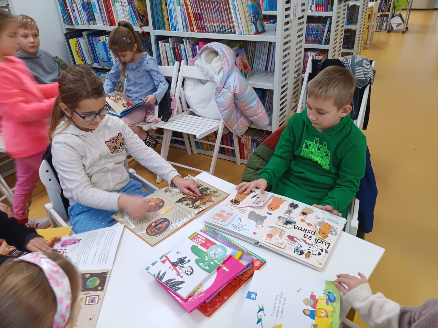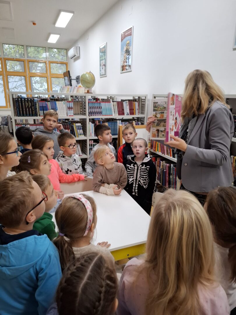 U ponedjeljak, 10.11., učenici 1.a i 1.b razreda, posjetili su Gradsku knjižnicu u Ivanić-Gradu. Saznali smo da u knjižnici ima 10000 knjiga za posuđivanje. Najviše smo se zadržali na Dječjem odjelu knjižnice. Učenici su pregledali i prolistali mnogo zanimljivih knjiga koje su bile za njihov uzrast. Druženje je proteklo u veselom raspoloženju.