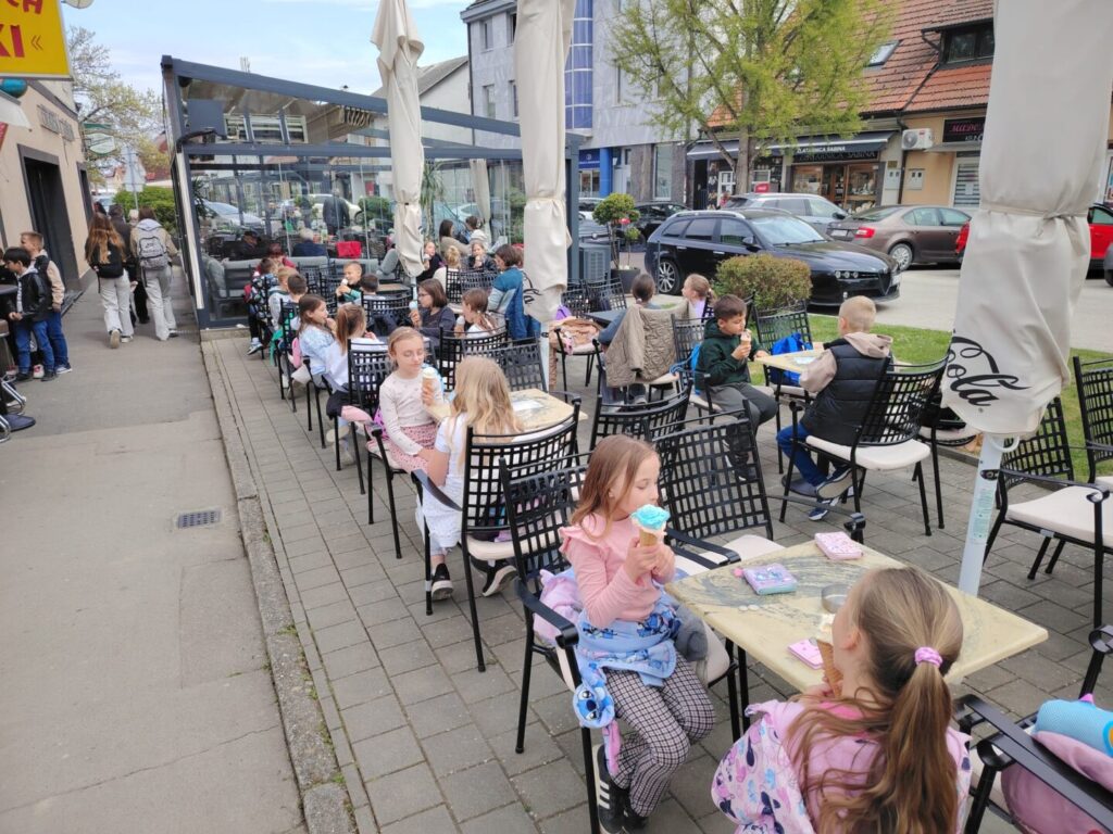 Bilo je jako zanimljivo i puno smo naučili, što je vidljivo i na priloženim fotografijama. Kako smo ove godine morali malo dulje čekati prijevoz za povratak u školu, iskoristili smo lijepo vrijeme i počastili se kuglicom sladoleda.
